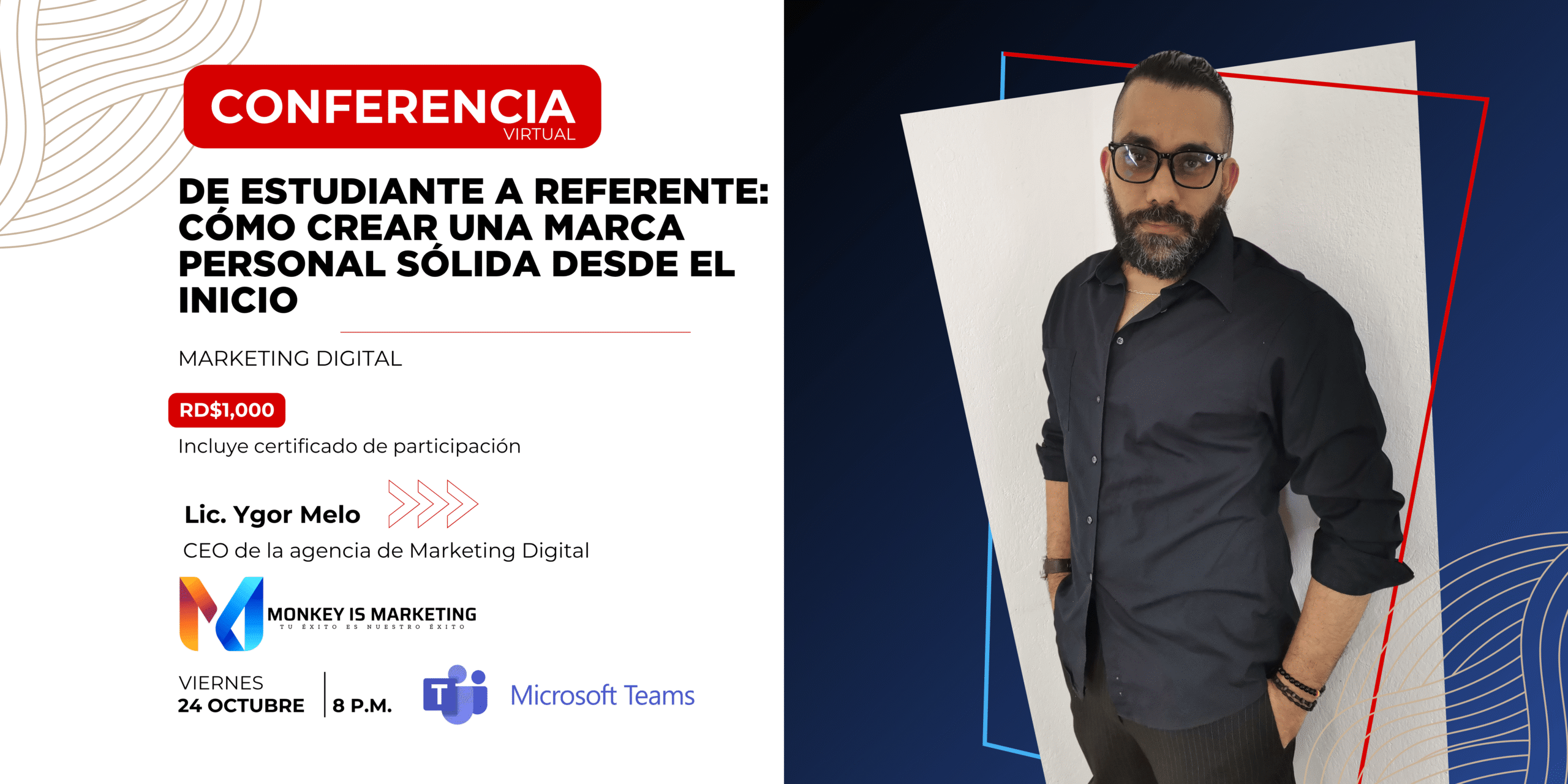 Esta es tu oportunidad de aprender de la mano del Lic. Ygor Melo, CEO de Monkey is Marketing, en un evento diseñado especialmente para estudiantes universitarios.